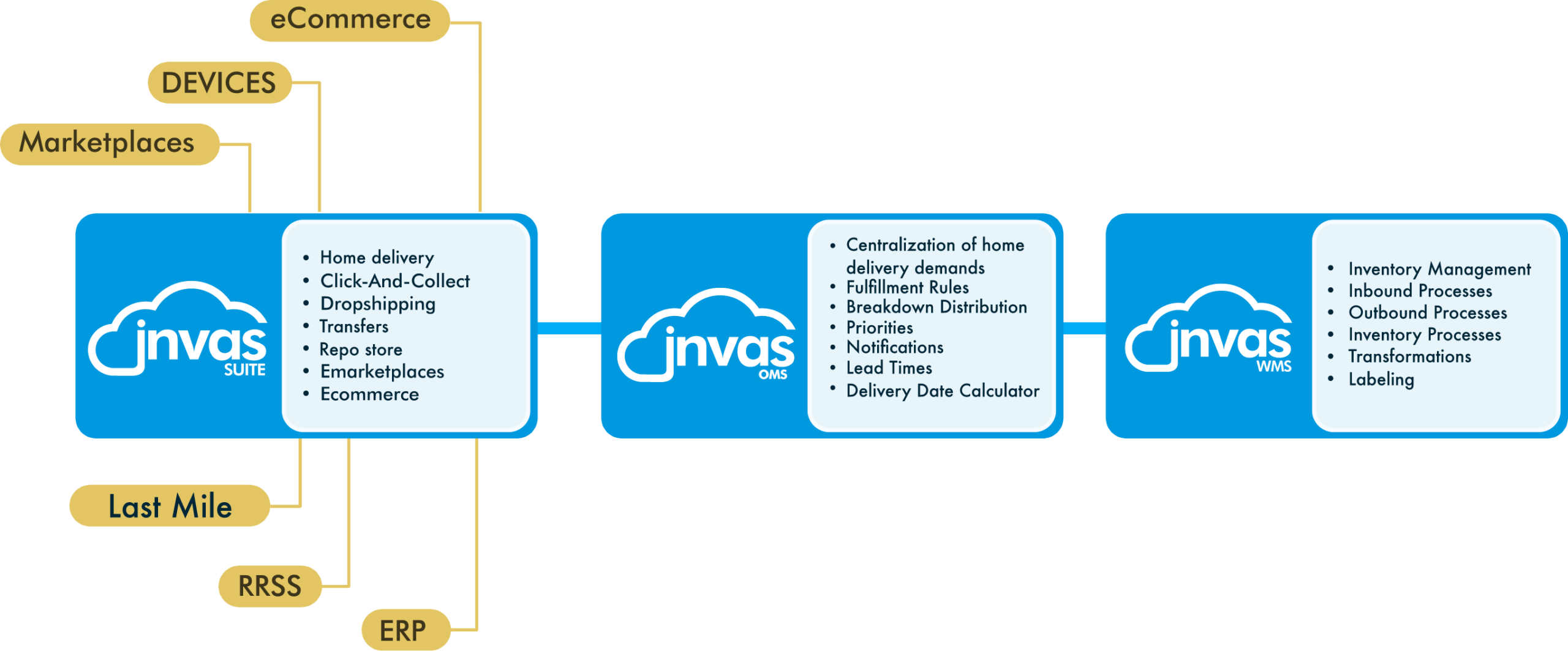 • The complete suite integrates easily with your technology ecosystem, enabling maximum flow, scalability, and adaptability across internal systems, partners, stores, 3PLs, and eCommerce platforms.